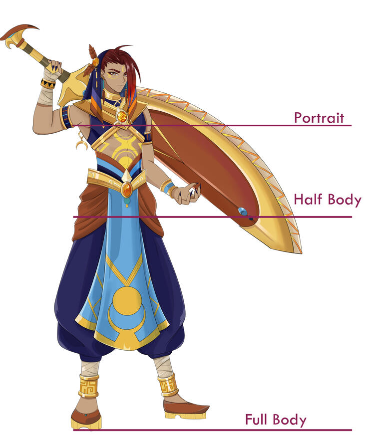 Half Body / bust up: Cel shading 70 Euro - Fully rendered 90 Euro - Additional character + 35 Euro